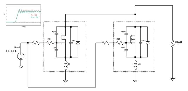 振荡是改变设备正常运行的高频信号。实际上,MOSFET的特殊构象构成了一个谐振电路,配备有电容(C)和电感(L)。这两种元素显然都是寄生成分。如果没有外部栅极电阻,谐振电路将具有非常高的Q因数。