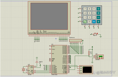 系统主要由彩色液晶屏、矩阵键盘、DS1302、DS18B20、串口中断、外部中断五部分组成。