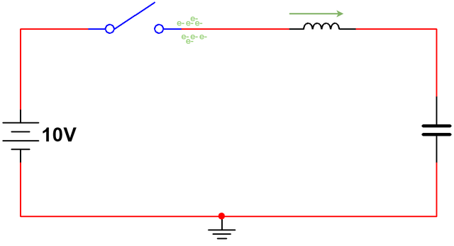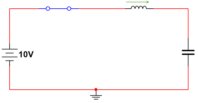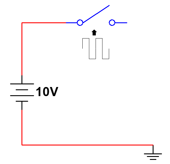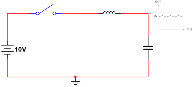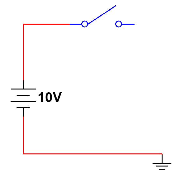 让我们先从一个简单的电路开始。电路由一个 10 伏的直流电源串联一个开关组成。