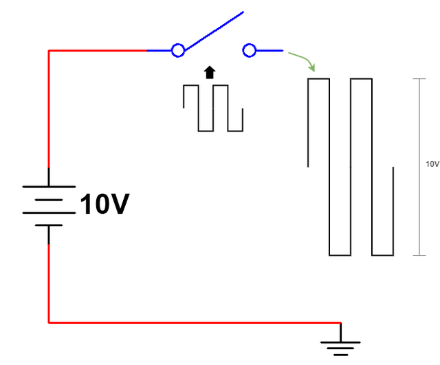 开关是什么并不重要。它可以是双极性晶体管,MOS 管,甚至可以是疯狂推动机械开关的疯子。