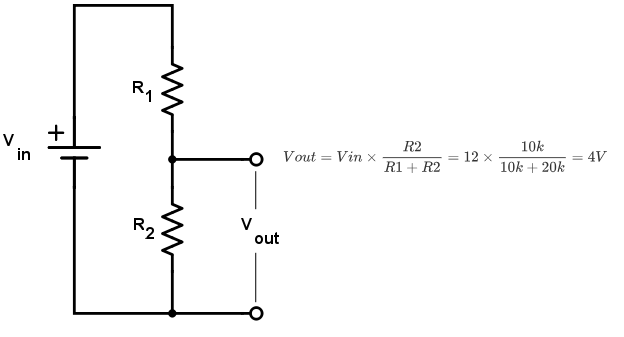 我们给我们的开关电源加一个反馈系统,以实现在负载改变的情况下,维持输出电压不变。我们使用 Arduino 监控输出电压,如果低了,我们就增加方波占空比,进而拉高输出电压;如果输出电压高了,我们减小占空比,进而减小输出电压。因为电路输出电压的范围为 0~12 伏,而 Arduino ADC 的最大输入电压为 5 伏,不能直接检测输出电压。我们需要将输出电压降到 5 伏一下,我们使用一个简单的电阻分压电路实现。