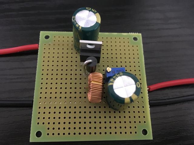 首先在把 LM2576T-ADJ 焊接在洞洞板的中间,在它周围留下大量的空间,以安装其他器件。