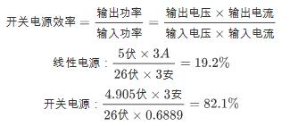 现在让我们计算我们制作的的这个电源的效率。并将其与线性稳压器进行比较。