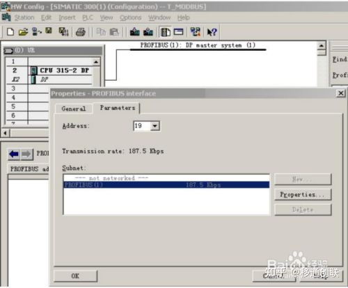 7,配置 PROFIBUS:New→Network Settings,选择:DP、187.5kbit/s(仅是举例)→“OK”,见图