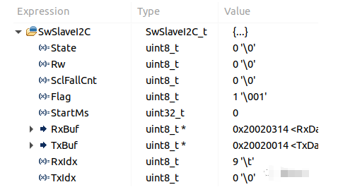 uint8_t Flag; // I2C状态标志,BIT0:0-地址无效,1-地址匹配