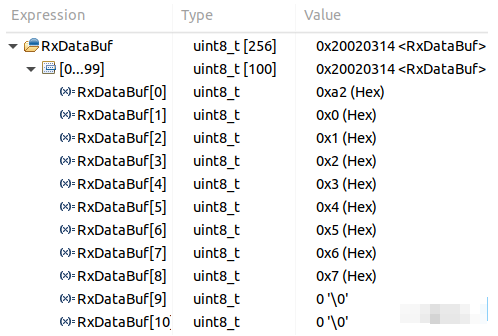 uint8_t RxIdx; // 接收缓冲区数据写入索引,最大值255