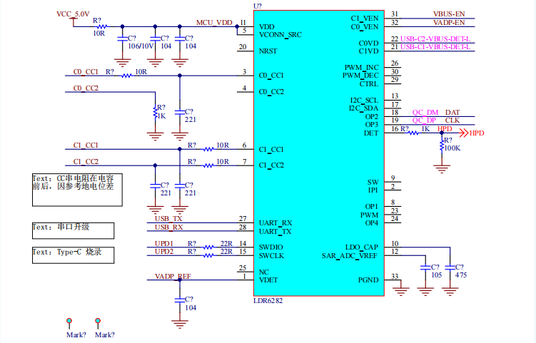 那么问题来了,究竟是什么芯片让它实现诸多功能?我们从PCB板上了解到采用了一颗LDR6282的PD协议芯片。