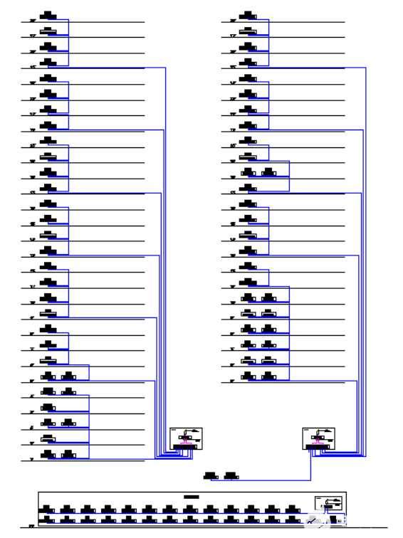 三明市城区商会位于福建省三明市三元区城关街道下洋社区居委会新泉路路口,整个项目包含A楼、B楼以及地下室,从整个项目建设投资性价比来考虑,本项目针对5层及以上集中计量部分采用多用户计量装置,针对5层以下及地下室,采用一户仪表计量方案。通讯管理机通过RS-485总线采集所有终端电能计量仪表的数据。通讯管理机将数据通过由光纤组成的专用网络将数据传输至中心管理计算机。系统管理软件对数据进行存储、处理,形成物业管理方需要的图形、文字等形式的文件,以此实现整个综合体商业办公区域用电的智能化管理。