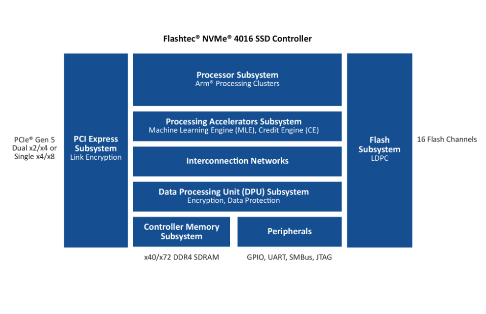 Flashtec® NVMe 4016控制器具备无与伦比的性能和包括业界领先的安全功能在内的丰富 “云就绪”功能集。