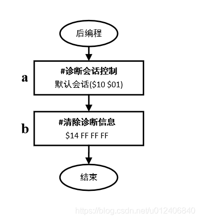 a)、诊断会话控制 $10 $01:诊断仪发送一个会话类型为默认会话的诊断会话控制($10)服务请求报文到CAN网络上。所有的ECU接收到诊断会话控制($10),而进入到默认会话模式。此请求通过功能寻址发送,请求发送给所有包含在编程事件中或因此而进入非默认会话模式的ECU。跳转到默认会话模式,表示通信控制($28)服务和控制DTC设置($85)服务也将复位到默认状态。
