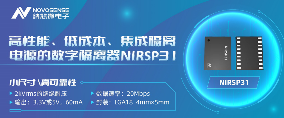 纳芯微(NOVOSNS)推出了全新集成隔离电源的数字隔离器---NIRSP31,可广泛适用于两轮车BMS、储能BMS、空气断路器、非标电表类应用中的隔离总线接口设计。