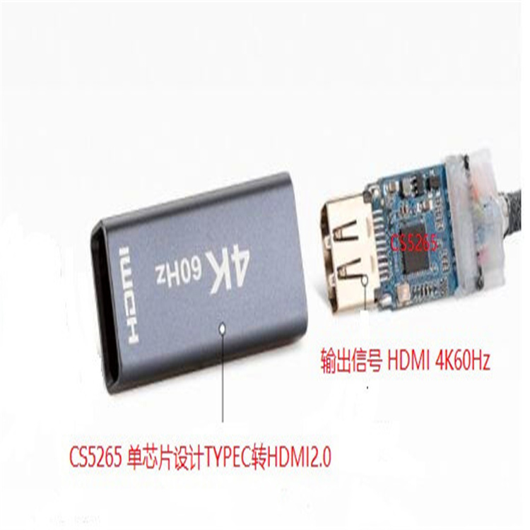 CS5265是TYPEC转HDMI2.0音视频转换芯片,CS5265符合DP1.4协议,且输出的视频信号是HDMI2.0 即4K60HZ CS5265集成了DP1.4兼容接收机和HDMI2.0b兼容发射机。此外,CC控制器还用于CC通信,以实现DP Alt模式。DP接口包括4条主通道、辅助通道和HPD信号。接收器支持每通道最大5.4Gbps(HBR2)数据速率。DP接收机结合了HDCP1.4和HDCP2.3内容保护方案具有嵌入式密钥,用于数字音视频内容的安全传输。