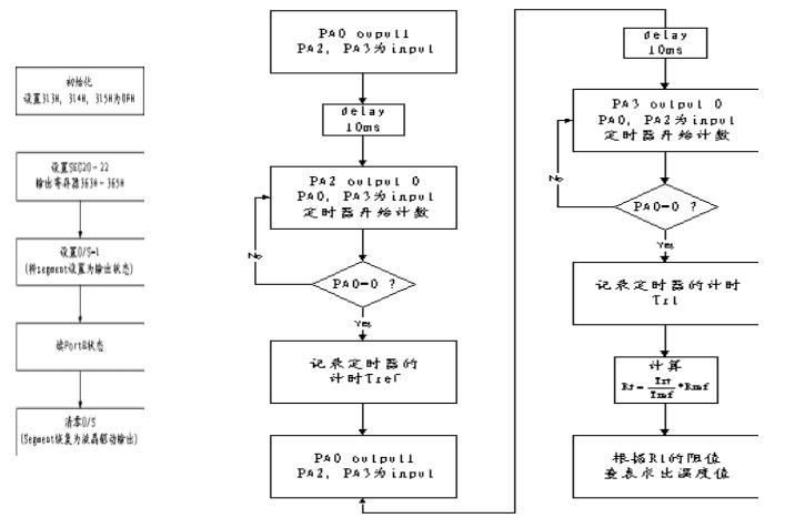 测温部分是采用RC充放电的方式实现的, 同采用AD转换测温方式相比, 此方案大大降低了系统的成本,而可以达到采用8位AD转换的测温精度。测温部分的软件流程图如图4。