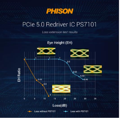 群联PCIe 5.0 Redriver IC PS7101 效能测试结果