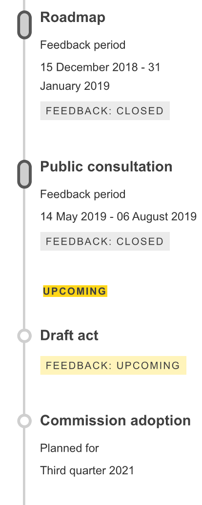 2019年5月14日,欧盟委员会开启了面向消费者和消费者协会、成员国当局、标准化委员会等个人和组织的公共征询,共收到2850份有效反馈。反馈中具体提到了充电器的方便、成本引发的一系列问题。