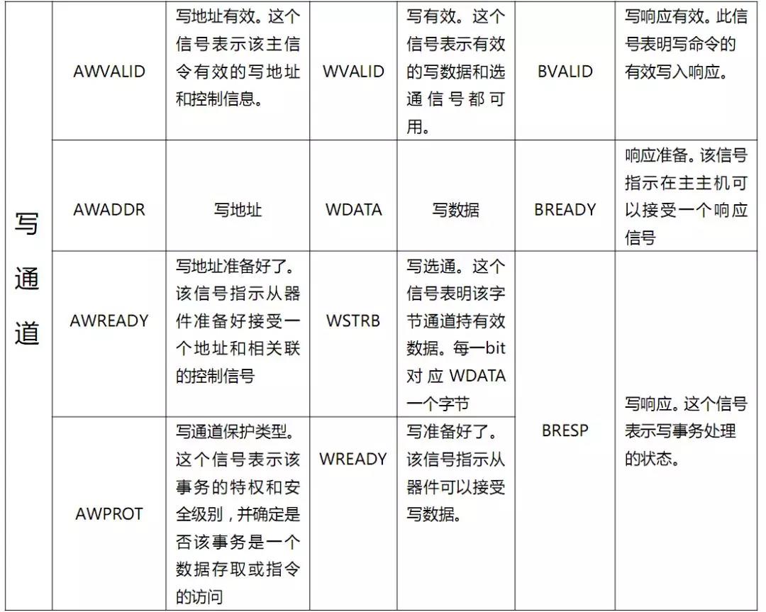 ③ 写地址通道,包含AWVALID,AWADDR, AWREADY信号;