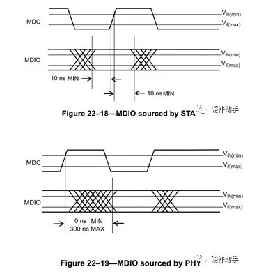 MDIO(Management Data Input/Output):是双向的数据线,用来传送MAC层的控制信息和物理层的状态信息。它与MDC时钟同步,在MDC上升沿有效。