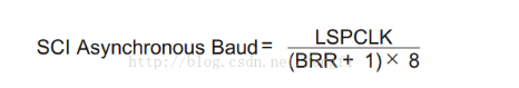 3.DSP波特率的设置。28335中的波特率设置是由SCIHBAUD和SCILBAUD两个寄存器决定的,两个八位的寄存器共同构成一个16位的数值BRR,BRR决定了波特率的分频系数,公式如下所示: