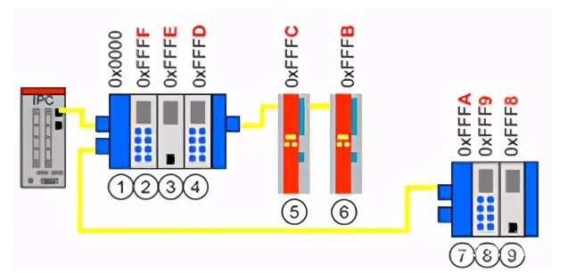 EtherCAT总线的网络寻址原理分为三种:自动增量寻址,固定地址寻址,逻辑寻址。