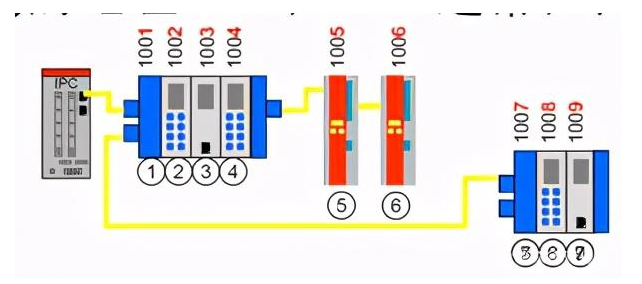 2:EtherCAT的可以实现线型、总线型、树形、星型等多种拓扑结构,最多可以连接65535个节点;