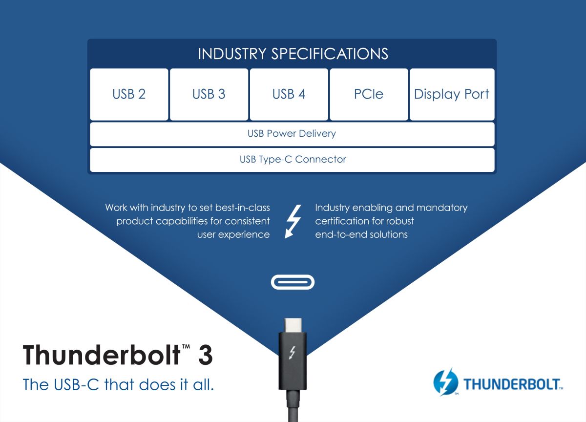 2015年,随着USB Type-C接口标准的出现,它很快就被最新的雷电3技术盯上,至今网上也仍在流传“雷电3一定是USB Type-C,但USB Type-C却不一定支持雷电3”的科普内容。