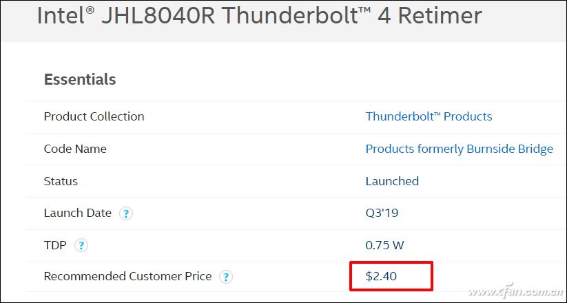 此外,像Ice Lake的这种设计也意味着雷电3接口与(集成控制器的)CPU之间距离较远,存在一定的信号衰减问题。为此,Ice Lake平台笔记本想要支持满血的雷电3,还需要搭配名为JHL8040R Retimer的信号增强器,虽然一颗Retimer芯片就能直连2个满速(40Gbps)的雷电3接口,但它毕竟也是需要2.4个美元的,而且背后还存在为PCB主板的优化布局等研发费用。