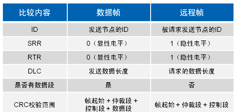 可以发送远程帧请求另一节点发送相应数据帧。与数据帧相比,远程帧没有数据场,结构如图所示。
