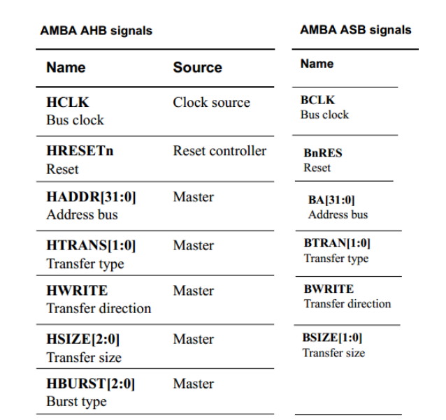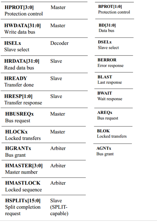 总共有大约20种不同的AHB信号,每种信号都有一个独特的目的。图3显示了AHB信号和ASB信号以供参考。