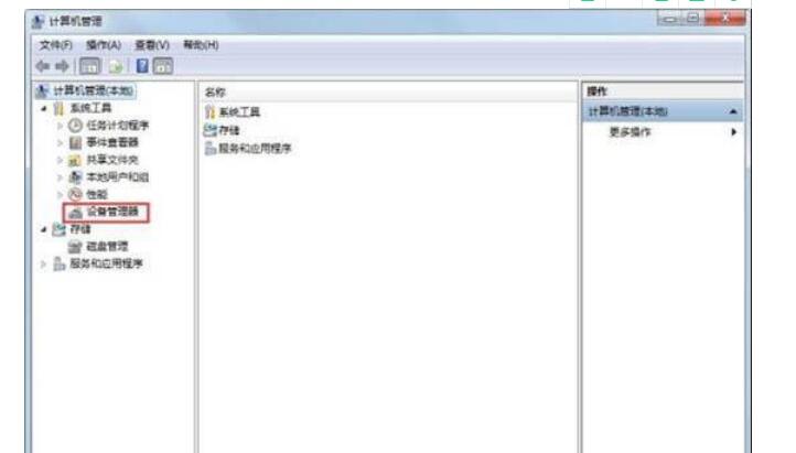 1、在电脑桌面找到“计算机”,选择“管理”,然后点击“设备管理器”,打开设备管理器;如图所示: