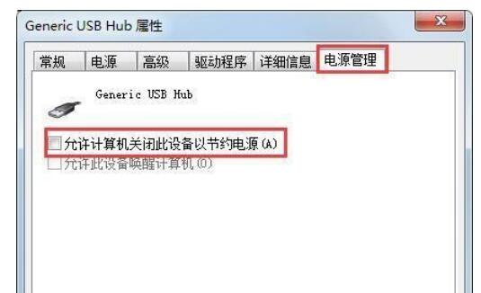 3、找到“电源管理”选项卡,将该选项卡下“允许计算机关闭这个设备以节约电源”功能前面的对号去掉,然后点击“确定”,即可保存设置;如图所示: