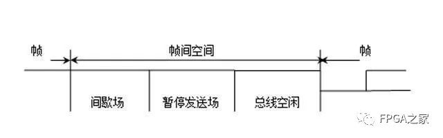 帧间空间包括间歇、总线空闲的位场。如果“错误认可”的节点已作为前一报文的发送器,则其帧间空间除了间歇、总线空闲外,还包括称作“挂起传送”(暂停发送)(Suspend Transmission)的位场。