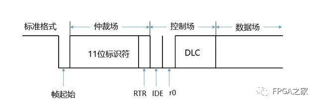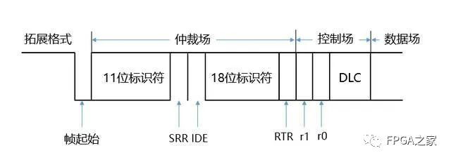 对于扩展格式,IDE位属于仲裁场;对于标准格式,IDE位属于控制场。标准格式的IDE位为“显性”,而扩展格式的IDE位为“隐性”。