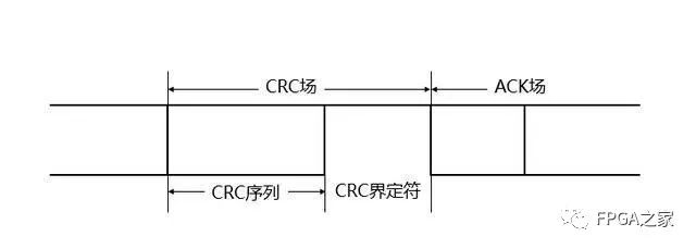 CRC场包括CRC序列(CRC Sequence),其后是CRC界定符(CRC Delimiter),结构如图: