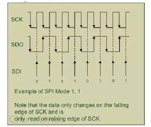 CPHA:时钟相位,表示SPI设备是在SCK管脚上的时钟信号变为上升沿时触发数据采样,还是在时钟信号变为下降沿时触发数据采样。若CPHA被设置为1,则SPI设备在时钟信号变为下降沿时触发数据采样,在上升沿时发送数据。当CPHA被设为0时也正好相反。