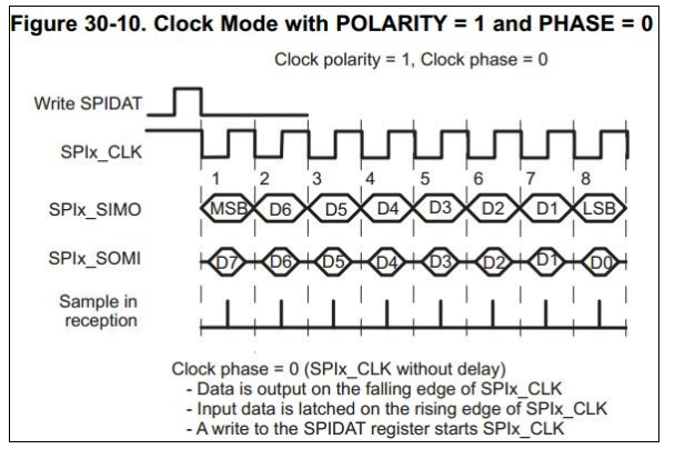 时钟极性和相位都是0时,上升沿为前沿,数据稳定被采样(锁存),下降沿为后沿,被写入SPI总线.