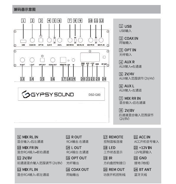 数字播放器已经蔚为风潮,甚至在汽车音响领域,目前也出现了越来越多的数播主机,其中部分高端机型,更支持对DSD等超高清无损格式的播放,烧友们要在爱车上也打造超高清的HI-END系统,现在可以说是简直易如反掌了。不过很多刚入门的烧友,在买到车载DSD数播主机后,对于机器面板上眼花缭乱的接口,往往都是“一脸懵比”,到底这些接口各自代表什么意思和功能?今天我们就拿2台市面上最热门的高端车载数播——SONYRSX-GS9和GYPSYSOUNDG80,和大家对这些接口的功能定义做个介绍。