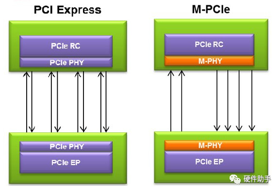M-PCIe即Mobile PCIe,主要应用对象是智能手机等嵌入式设备。PCI-SIG在PCIe Spec V3.1中引入基于MIPI M-PHY V2.0的M-PCIe。相比于标准的PCIe总线,M-PCIe ECN主要的改动在物理层,通过引入M-PHY,旨在获得更低的功耗以适应嵌入式设备的低功耗要求。