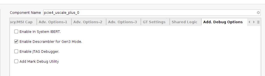 解扰器模块在 PCIe IP 配置 GUI 中被使能,具体如下: