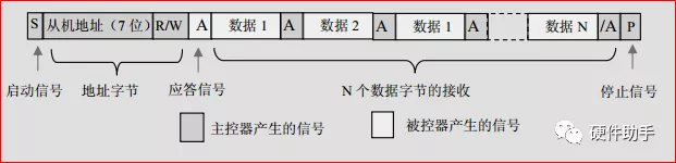 ★主机的一次发送通信,其发送的数据数量不受限制。主机是通过STOP信号通知发送的结束,从机收到STOP信号后退出本次通信;