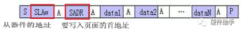 在从器件地址后面直接跟需要读写的寄存器首地址,然后直接跟数据,最后通过停止信号结束此次读写。