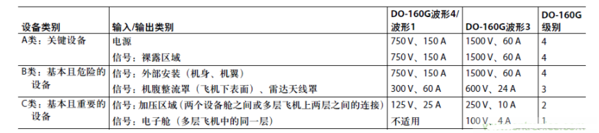 表1:DO-160G第22节针对商业飞机的典型防雷要求