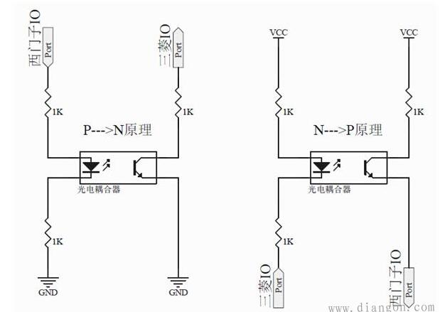 从光电耦合器的内部结构可以看出,我们稍加改造即可满足转换要求,转换原理如下