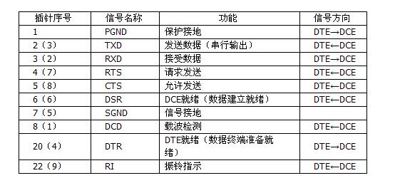 RS-232C接口规定使用25针连接器,连接器的尺寸及每个插针的排列位置都有明确的定义。在一般的应用中并不一定用到RS-232C标准的全部信号线,连接器引脚定义如图1所示。
