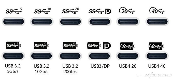 USB4 20:包括数字20的USB标识,代表带宽20Gbps。
