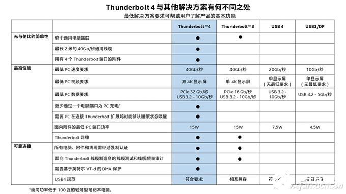 问题又来了,英特尔在年初发布Tiger Lake(第十一代酷睿)平台时还带来了雷电4标准,它的规格和雷电3相同,二者似乎也是马甲关系。