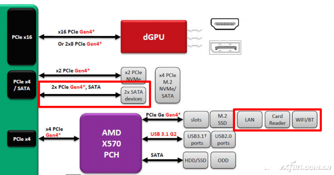 因为PCIe通道兼容性好,组合使用方便,所以现在主板上的大部分配件比如显卡、M.2 SSD都是用PCIe通道连接的,连新主板上的一些SATA接口、网络、Wi-Fi和蓝牙接口等,其实也都是PCIe通道转换的。