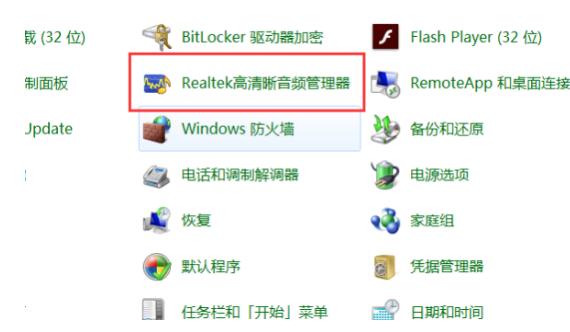 一、在控制面板中找到并点击“Realtek高清晰音频管理器”。