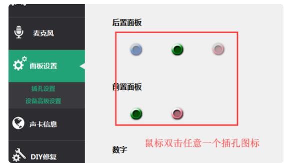 三、进入面板设置之后,这时鼠标对任意一下插孔双击进行设置。