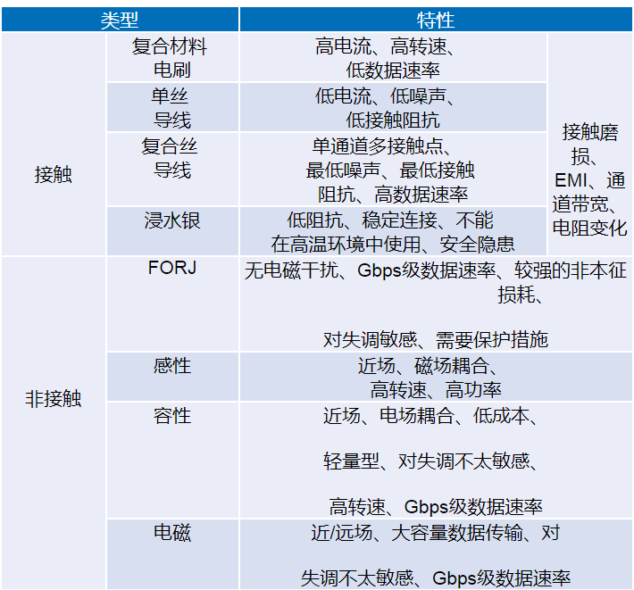 表1.基于数据接口耦合技术进行旋转接头分类