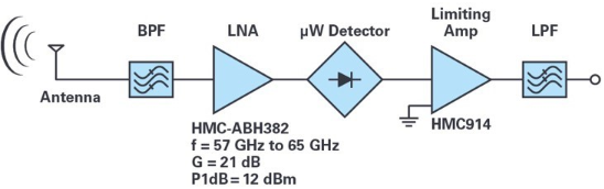 图11.适用于60 GHz接收器的完整信号链解决方案(OOK解调器)